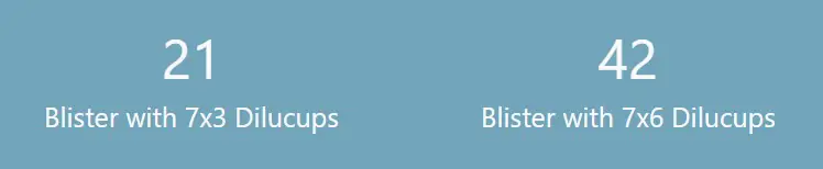 Dilucup is available in blisters of seven rows of either three or six containers, designed to fit in the tray of the Dilugent Shaker,