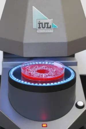 Identifies antibiotic disks and zone size around each disk, recording the correspondent diameter. Reads up to eight disks per plate in seconds, reading hundreds of plates in an hour.