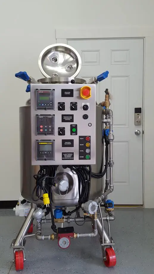 - Stationary – 400 liters through 1000 liters jacket recirculation temperature maintenance available
