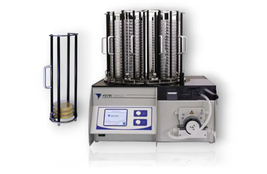 Automatic media preparator, Mediawel 30/50, allows for quick and accurate production of all types of agar, broths, and dilution fluids. The Mediawel 30 has a capacity of 2.5 to 30 liters, and the Mediawel 50 has a capacity of 5 to 50 liters. Both instruments provide a high temperature accuracy which will increase productivity, quality, repeatability, and traceability.