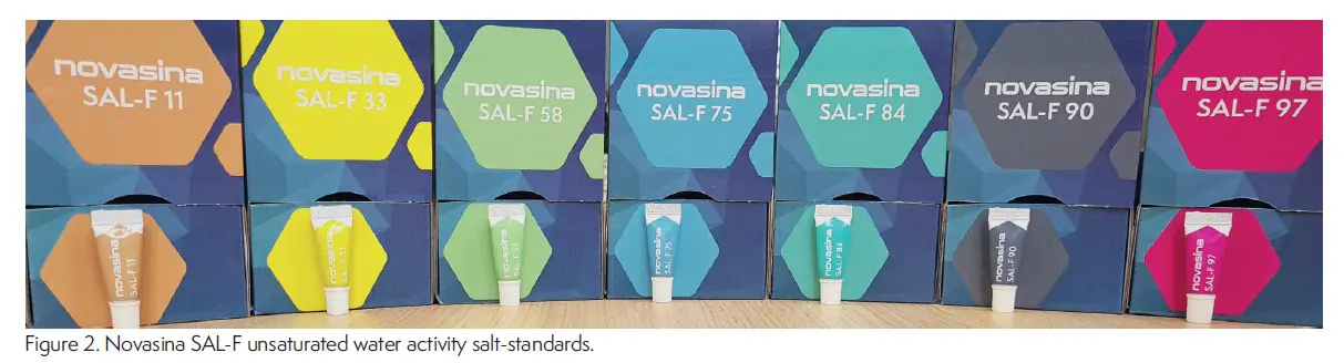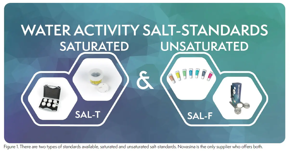 The availability of independent calibration standards of known value is one of the benefits of water activity testing that makes it more powerful than moisture content. Accuracy determination, defined as the agreement of a measured value with the true value, requires the existence of standards of known value. Consequently, since the water activity of salt standards is dictated and known through thermodynamics the accuracy of water activity instrumentation can be determined. The accuracy of a moisture content analyzer cannot be determined due to the lack of similar independent standards. Furthermore, the existence of 2 different types of standards, each with its own unique benefits, ultimately allows the user to choose the standard the best fits their needs. While providing a choice of standards seems beneficial, Novasina is the only water activity provider that provides both types of standards: saturated salt slurry standards called SAL-T and unsaturated salt solution standards called SAL-F. Contact Neutec Group to determine which water activity standard is best for you.